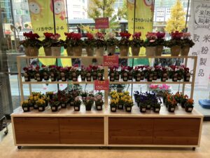 先週は、シクラメンのイベントを開催しましたが、ご来店できなかった客様でも今週もシクラメンを購入できるチャンスがあります!今週のイベントを主催しているJA東京みらいもシクラメン、ガーデンシクラメンを販売しています。冬はやっぱりシクラメンですよね。
