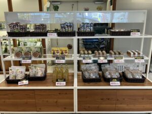 管内の農産物を使った食品も届いています。はちみつ、ジャム、梨ジュース、カレーなど様々な商品があります。特にベジタブルキーマカレーは原材料に、管内え生産されたトマトやタマネギ、ニンジンなどを使用して、動物性食品を含まないヴィーガン対応で、コクのあるキーマカレーなんです。そして小麦粉の代わりに米粉を使用しているグルテンフリーでもあるんです。アグリパークでは米粉パンなども販売していますので、是非この機会にお買い求めください!