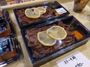 長崎レモンステーキ丼はいかがでしょうか?お弁当もありますが、少しお時間いただければ、キッチンで調理した熱々のステーキ丼を食べていくことも可能です。
