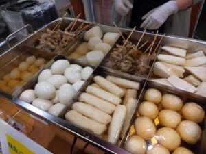 長崎おでんを販売しています。お好きな具材を4種類選んで500円です!肉好きな私なら。。。牛すじ4本!